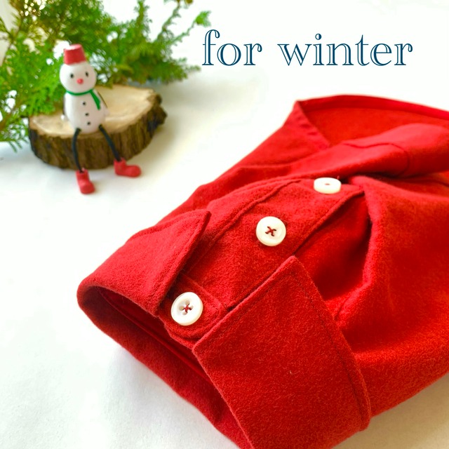 ……………………………………………………………………………… 冬になると着たくなる、赤。 フランネル生地で作ってみました。 シンプルに赤一色ですが、 飾りもの、かぶりもの、 アクセサリーなどが映えて良いかも、です。 それぞれデコレーションを楽しんで下さい! ーーーーーーーーーーーーーーーーーーーーーーー ⚫︎背中側の仕上げを選んで頂けます。 ⚪︎フラット(平らな状態) …どんな犬種でも、 体型に関わらずワンちゃんの身体に合います。 形としては、寸胴な筒状になります。 身体にそった型で裾が広がりません。 ※基本仕様とします。 特に指定がない場合は、フラットで仕上げます。 ⚪︎ギャザー…ギャザーを寄せた分、すそに向か ってふんわり広がる感じになります。 ワンピース仕様におすすめです。 可愛らしく柔らかい印象になります。 ーーーーーーーーーーーーーーーーーーーーーーー ⚫︎オプションについて 袖をパフスリーブに変えたり、裾にフリルをつけることが できます。 パフスリーブの袖丈は7部丈くらいからの短めが オススメです。 ーーーーーーーーーーーーーーーーーーーーーーー ◆基本サイズ 以下お洋服の出来上がり実寸サイズになります。 [( )内は適正だと思うヌードサイズになります ] ✴︎LLサイズ 首回り 約36センチ (約30〜32センチ) 胴回り 約55センチ (約47〜49センチ) 着丈 約34センチ 袖丈 約13センチ ✴︎Lサイズ 首回り 約32センチ (約26〜28センチか 胴回り 約47センチ (約40〜42センチ) 着丈 約31センチ 袖丈 約11センチ ✴︎Mサイズ 首回り 約29センチ (約23〜25センチ) 胴回り 約43センチ (約36〜38センチ) 着丈 約30センチ 袖丈 約10センチ ✴︎Sサイズ 首回り 約26センチ (約20〜22センチ) 胴回り 約39センチ (約32〜34センチ) 着丈 約29センチ 袖丈 約9センチ ✴︎SSサイズ 首回り 約24センチ (約19〜21センチ) 胴回り 約36センチ (約29〜31センチ) 着丈 約26センチ 袖丈 約7センチ ✴︎3Sサイズ 首まわり 約20センチ (約15〜17センチ) 胴まわり 約33センチ (約26〜28センチ) 着丈 約24センチ 袖丈 約5センチ ーーーーーーーーーーーーーーーーーーーーーー ⚫︎サイズ微調整について 基本サイズの型紙をもとにサイズの微調整をしており ます。サイズの微調整は必ず必要なものではございま せん。基本サイズのままでは、胴まわりが少しキツイ かも』というような場合、胴まわりだけ少し大きくす ること可能です。ご相談下さい。備考欄にヌードサイ ズと犬種を入れてご注文下さい。 ワンちゃんのストレスにならないサイズにしてあげて 下さい。 ⚫︎出来上がりサイズを決めて頂くこともできます。 お洋服の丈、袖丈など、『いつものお決まりのサイズ』 がございましたら、ご相談下さい。対応いたします。 半袖や、おパンツカットによる着丈を短くしたい場合、 男の子でオシッコがかからないよう前丈を短く、など。 ーーーーーーーーーーーーーーーーーーーーーー ⚫︎納期について 平均2週間くらいです。 オーダーが混んでいる時は1ヶ月近く掛かることも ございます。 手作り品でひとつひとつサイズを調整しながら、丁寧に 製作しておりますので、大量生産できない状況です。 お急ぎの場合は、事前にご相談下さい。 ⚫︎メール、お問い合わせの対応について 昼間は製作に集中したいため、メール対応、お問い合わせ 対応が遅れることがございます。 ーーーーーーーーーーーーーーーーーーーーーーー ⚫︎お手入れについて wanoneでは、しっかりした縫製を心掛けておりますので 洗濯機でのお洗濯で大丈夫ですが、生地を傷ませない ようにするため、手洗いをオススメしております。