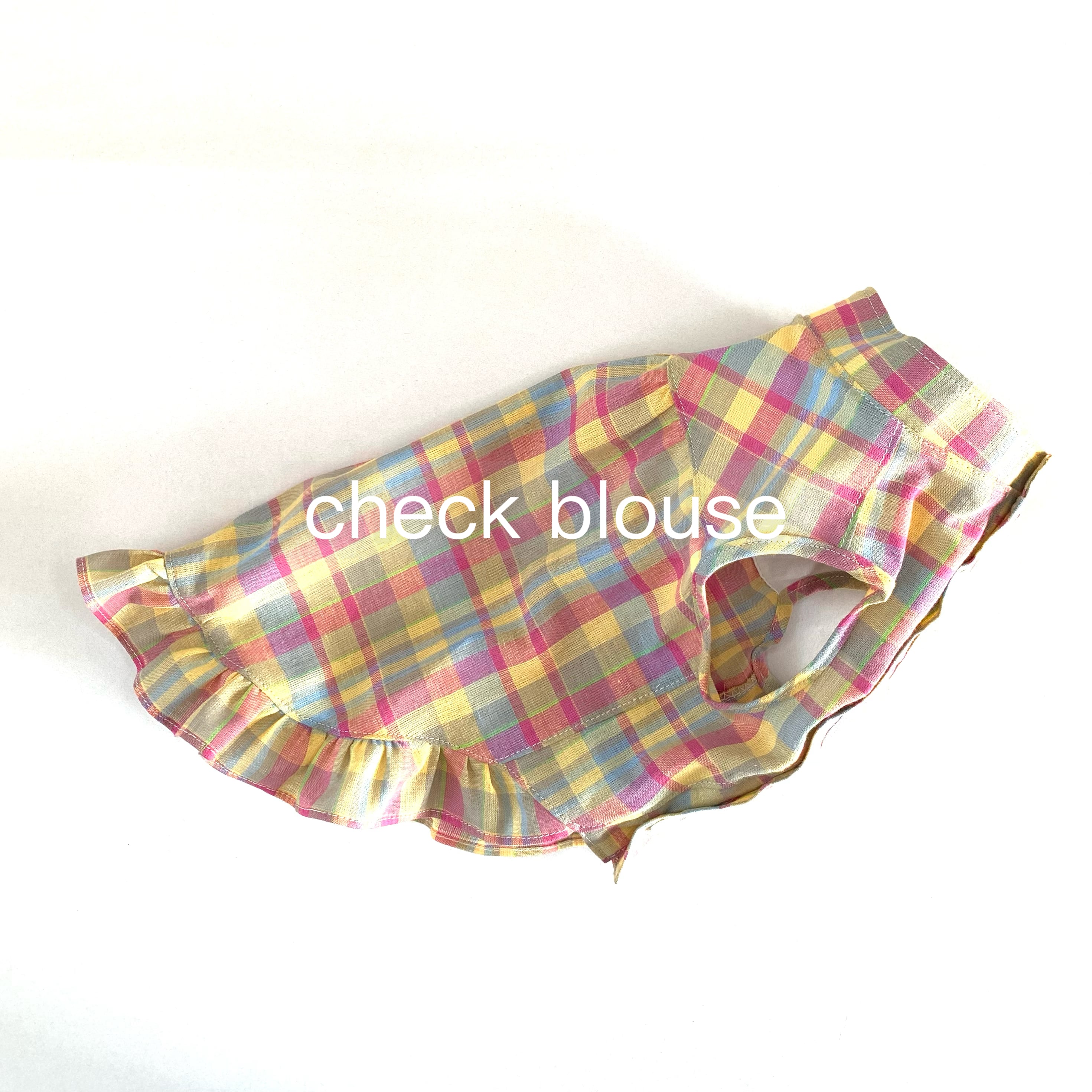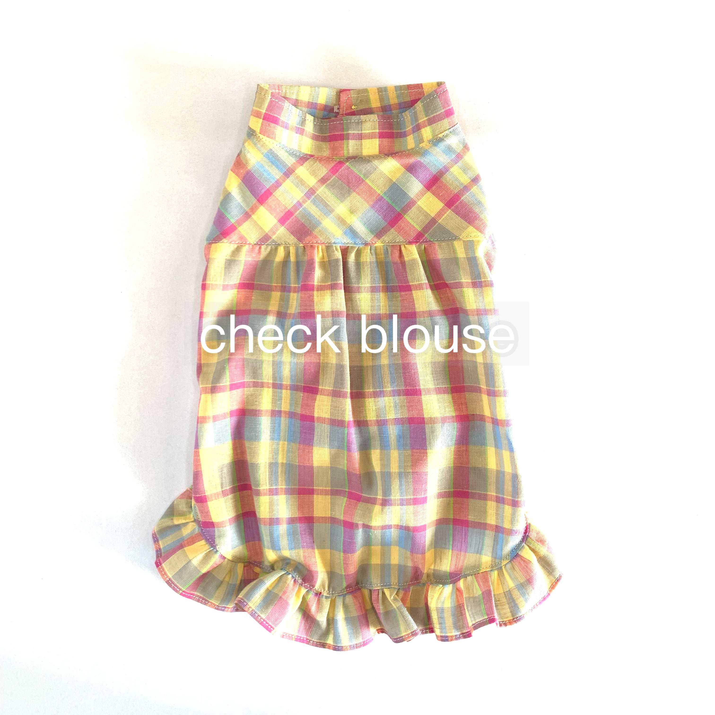 犬服 ♡ ピンク&イエローのマドラスチェックのノースリーブシャツ